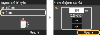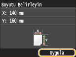 / öğesini ya da sayı tuşlarını kullanarak <X> tarafının uzunluğunu girin ve <Uygula> öğesine dokunun.![]() |