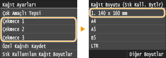 Kağıt çekmecesi için kağıt boyutu seçerken