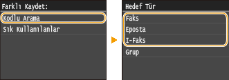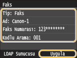 Seçilen kullanıcının LDAP sunucusuna kaydedilen kullanıcı adı, faks numarası veya e-posta adresi hedef alanına girilir.