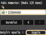 Sayı tuşlarını kullanarak arama hedefi karakter dizesini girin ve <Uygula>öğesine dokunun.
