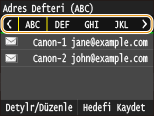 tuşuna basın veya <Adres Defteri> öğesine dokunun.