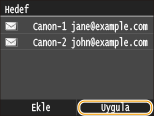 Kaydetmek istediğiniz hedeflerin tamamını kaydedene kadar 7'den 9'a kadar olan adımları tekrarlayın ve ardından <Uygula> öğesine dokunun.