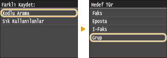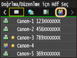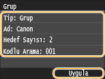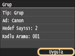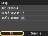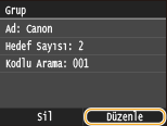 Birden çok hedef, gruplar halinde birleştirilebilir. En fazla 299 hedef (e-postalar için 100 hedef) kaydedebilirsiniz. Bir grup kaydedildikten sonra, grubu düzenleyebilir veya silebilirsiniz.