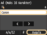 Sayı tuşlarını kullanarak adı girin ve <Uygula> öğesine dokunun.