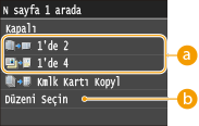 <2'si 1 arada>/<4'ü 1 arada> kullanılması kopya oranını otomatik olarak azaltır (kopya oranı ekranda gösterilir).