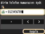 Sayı tuşlarını kullanarak faks numarasını girin ve <Uygula> öğesine dokunun.
