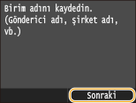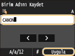 Sayı tuşlarını kullanarak ünite adını (kullanıcı adı veya şirket adı gibi) girin ve <Uygula>öğesine dokunun.