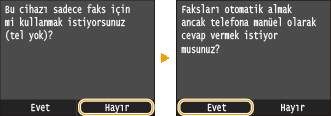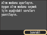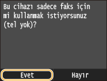 Alma modunu seçmek için, <Evet> veya <Hayır> öğesine dokunun.