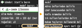 Hedef listesini görüntülemeden hızlı ve kolay şekilde hedefleri silmek istiyorsanız1. adımda <Hedef> öğesine dokunmadan önce belirttiğiniz hedefler arasında geçiş yapmak için