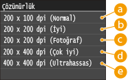 <Faks>  <Çözünürlük> Çözünürlüğü seçin
