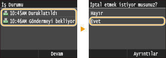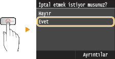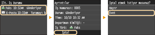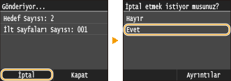 tuşuna bastıktan hemen sonra belge gönderme işlemini iptal etmek isterseniz, ekranda <İptal> öğesine dokunun veya işletim panelindeki