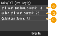 Makineyi, gelen arama zili belirtilen bir zaman çerçevesi içinde çaldığında, faksları otomatik olarak alacak şekilde ayarlayabilirsiniz. Oto Alıma Geç