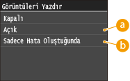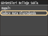 <Açık> veya <Sadece Hata Oluştuğunda>