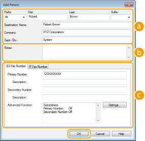 Faks numaralarını girin. Gerektiğinde numaralar arasına tire eklenebilir. Faks numaraları için "Ev" veya "Ofis" gibi kullanım açıklamaları eklemek istiyorsanız, bunları [Description] (Açıklama) alanına girin.