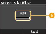 Toner kartuşunda kalan toner miktarına ilişkin görüntülenen bilgi, yalnızca bir kılavuz olarak kullanılabilir ve gerçekte kalan miktardan farklılık gösterebilir.