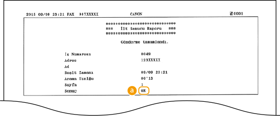 <Faks İlt. Sonucu Raporu> veya <E-Posta/I-Faks/Dosya İlt Sonucu Raporu>