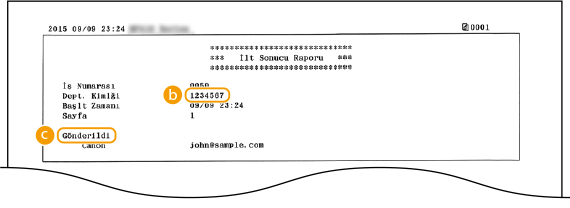 E-posta için, İlt. Sonucu Raporları makine ile posta sunucusu arasındaki iletim sonucunu gösterir, makine ile hedef adres arasındaki sonucu göstermez. İletim başarısız olsa da, üç basamaklı hata kodu yazdırılmaz. Hata kodunu denetlemek için bir İletişim Yönetimi Raporu yazdırın (