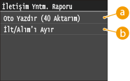 Her 40 iletimin ardından raporun otomatik olarak yazdırılması için <Açık> seçeneğini belirleyin veya raporu otomatik olarak yazdırmak istemiyorsanız <Kapalı> seçeneğini belirleyin.