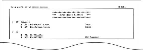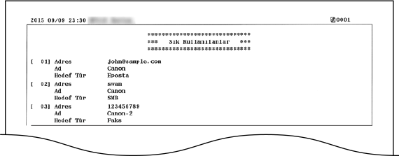 Adres Defterinde <Kodlu Arama>, <Sık Kullanılanlar> ve <Grup Arama> olarak kayıtlı hedefler listesini bir Adres Defteri Listesi yazdırarak denetleyebilirsiniz.