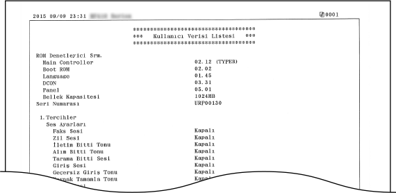 <Kullanıcı Verisi Listesi> öğesi, <Ağ Ayarları> ve <Sistem Yönetimi Ayarları> ayar listelerini ve <Faks Ayarları> ayar listesinin bir kısmını içermez. <Ağ Ayarları> ve <Sistem Yönetimi Ayarları> dâhil olmak üzere tüm ayar öğelerini denetlemek için, <Sistem Yöneticisi Veri Listesi> öğesini yazdırın.