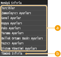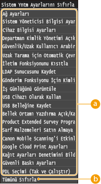 Varsayılan<Ağ Ayarları>öğesini geri yüklemek için aşağıdaki yordamı kullanabilirsiniz.