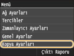 Kopyalama ile ilgili tüm ayarlar, kısa açıklamalarla birlikte listelenir. Varsayılan ayarlar kama ile işaretlenmiştir (