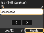 Sayı tuşlarını kullanarak ağ anahtarını girin ve <Uygula>öğesine dokunun.