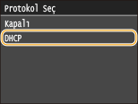 <Kapalı>öğesine dokunun. Bu hizmetler kullanılabilir olmadığında <DHCP> öğesini seçerseniz, makine bu hizmete ilişkin ağ arayarak zaman ve iletişim kaynaklarını harcar.