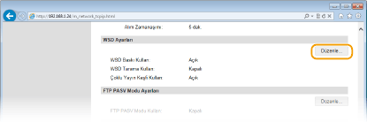 WSD aracılığıyla bir bilgisayardan makine hakkında bilgi almak için onay kutusunu seçin. [WSD Baskı Kullan] onay kutusu seçildiğinde bu onay kutusu otomatik olarak seçilir. [WSD Tarama Kullan]