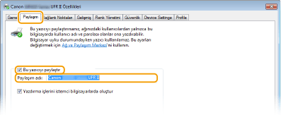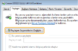 Bir yazdırma sunucusu kullanırken Departman Kimliği Yönetimini yürütmek içinYazıcı sürücüsü kurulumu sırasında, "Canon Driver Information Assist Service (Canon Sürücü Bilgileri Yardımcı Hizmeti )" eklenmelidir. Ayrıntılar için bkz. "MF Driver Installation Guide (MF Sürücü Kurulum Kılavuzu)".
