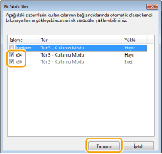 ![]() Yazdırma sunucusunun işletim sistemine bağlı olarak aşağıda belirtilenlerden ilave sürücüleri seçin.