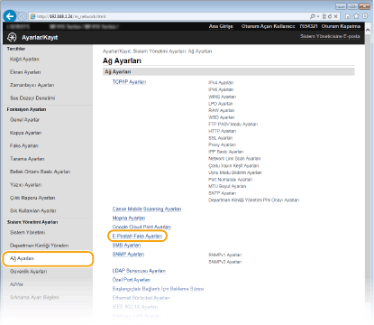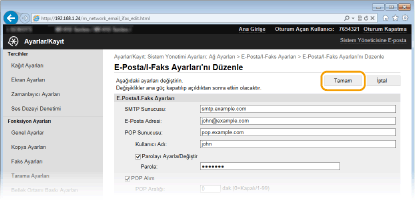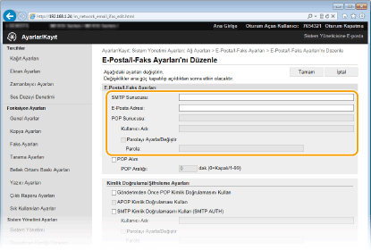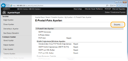 I-Faksları göndermek ve almak için makineyi kullanma ayarları ve e-posta ya da I-Faks göndermeden önce iletişimin POP kimlik doğrulaması ve şifrelemesi ayarları gibi ayrıntılı gönderme ve alma ayarlarını yapılandırmak için Uzak Kullanıcı Arabirimini kullanın.