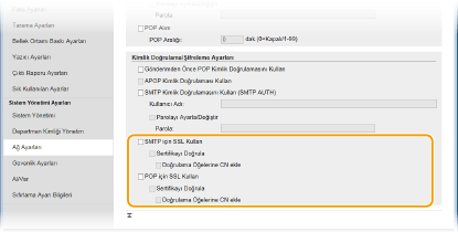 SMTP sunucusu ile şifreli iletişim için TLS kullanmak için onay kutusunu işaretleyin. Gereksinimlerinize bağlı olarak, [Sertifikayı Doğrula] veya [Doğrulama Öğelerine CN ekle] için olan onay kutusunu işaretleyin.