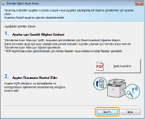 [Gönder İşlevi Ayar Aracı] için [Start] (Başlat) öğesini tıklatın.
