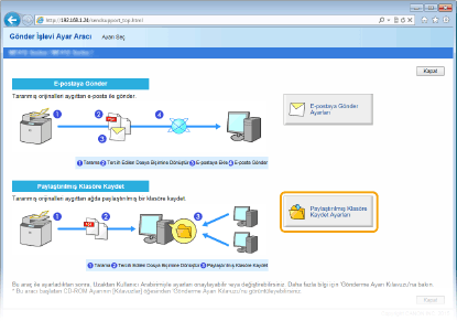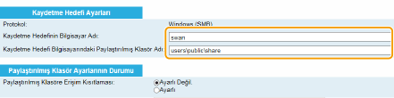 Klasörü Adres Defterine kaydederek, kaydetme hedefi olarak paylaşılan klasörün konumunu belirtmek için Uzak Kullanıcı Arabirimi'ni de kullanabilirsiniz. Uzak Kullanıcı Arabirimi'nden Adres Defterindeki Hedefleri Kaydetme