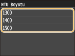 Çoğu Ethernet ağında, gönderilebilecek maksimum bir paket boyutu 1500 bayt'tır. Paket, gönderilmeden önce orijinal verilerin bölündüğü bir veri öbeğini ifade eder. Maksimum iletim birimi (MTU), her ağ üzerinde değişiklik gösterebilir. Makinenin ayarlarını gerektiği gibi değiştirin. Daha fazla bilgi için Ağ Yöneticinize başvurun.
