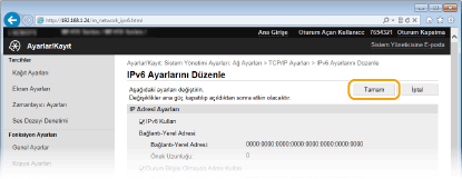 Ayarları yapılandırmak için [IPv6 Kullan] onay kutusu seçilmelidir. IPv6 Adreslerini Ayarlama