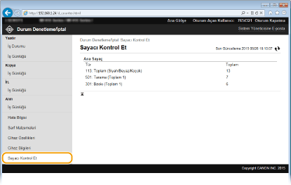 Uzak Kullanıcı Arabiriminde oturum açın (Uzak Kullanıcı Arabirimi'ni Başlatma [Durum Denetleme/İptal]  [Sayacı Kontrol Et]