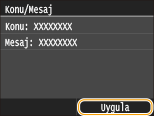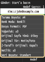 Yalnız kendi e-posta adresinize gönderebilirsiniz. Başka hedeflere göndermek için, gönderme işlevi kimlik doğrulama ayarlarını e-posta iletimi kısıtlanmayacak şekilde yapılandırmalısınız. Ayrıntılar için yöneticinize başvurun. LDAP Sunucusu Kimlik Doğrulaması.