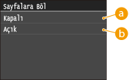 <Kapalı> veya <Açık> seçeneğini belirtin.