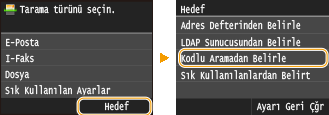 Kodlu arama numaralarını kullanmak için, hedef önceden Adres Defterine kaydedilmiş olmalıdır. Adres Defterine Hedef Kaydetme
