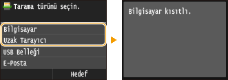 Departman Kodu için devre dışı bırakmak istediğiniz işlevin onay kutusunu işaretleyin. ![]() [Tarama] onay kutusu işaretlenmişse, USB Bellek Aygıtına Kaydet, E-posta Gönder ve Paylaşılan Klasöre veya FTP Sunucusuna Kaydet işlevlerinin tümü kısıtlanır. Belgeleri bir bilgisayara aktararak tarayan diğer yöntemleri de kısıtlayabilirsiniz, ama bu durumda her bir Departman Kimliği için erişimi engelleyemezsiniz (Departman Kimliği Bilinmediğinde İşleri Engelleme).