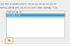 [Kaydedilecek Adres] metin kutusuna IP adresini (veya IP adresleri aralığını) girin ve [Ekle] öğesini tıklatın.