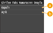 <Girilen Faks Numarasını Onayla> öğelerini seçin.