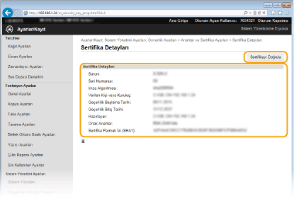 Sertifikanın ayrıntılarını kontrol edin ve [Sertifikayı Doğrula] öğesini tıklatın.