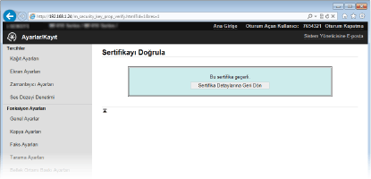 Bir anahtar çiftini doğrulamak için [Anahtar ve Sertifika Ayarları] öğesini ya da bir CA sertifikasını doğrulamak için [CA Sertifikası Ayarları] öğesini tıklatın.