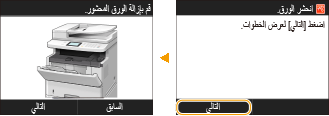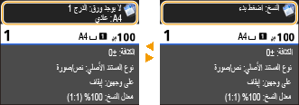 <إعدادات الورق>كما يستخدم هذا الزر لتحديد حجم ونوع الورق الذي يتم تحميله في درج الورق وعلبة الورق متعددة الأغراض. تحديد حجم ونوع الورق