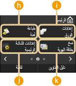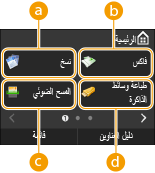 أزرار الاختصارعرض "الإعدادات المفضلة" المسجلة على النسخ والفاكس والمسح الضوئي. إضافة أزرار إلى الشاشة الرئيسية