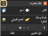 في لوحة التشغيل. استخدم هذه الشاشة لتحديد الإعدادات وتسجيل الوظائف.