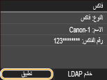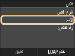 يتم إدخال اسم المستخدم أو رقم الفاكس أو عنوان البريد الإلكتروني الخاص بالمستخدم المحدد والمسجلة في خادم LDAP في حقل الوجهة.